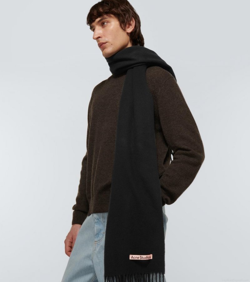 This black mélange scarf from Acne Studios is crafted from pure wool and has fringed edges.