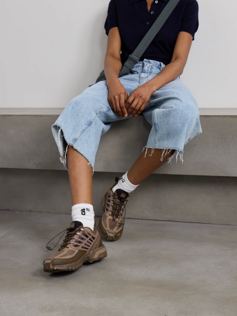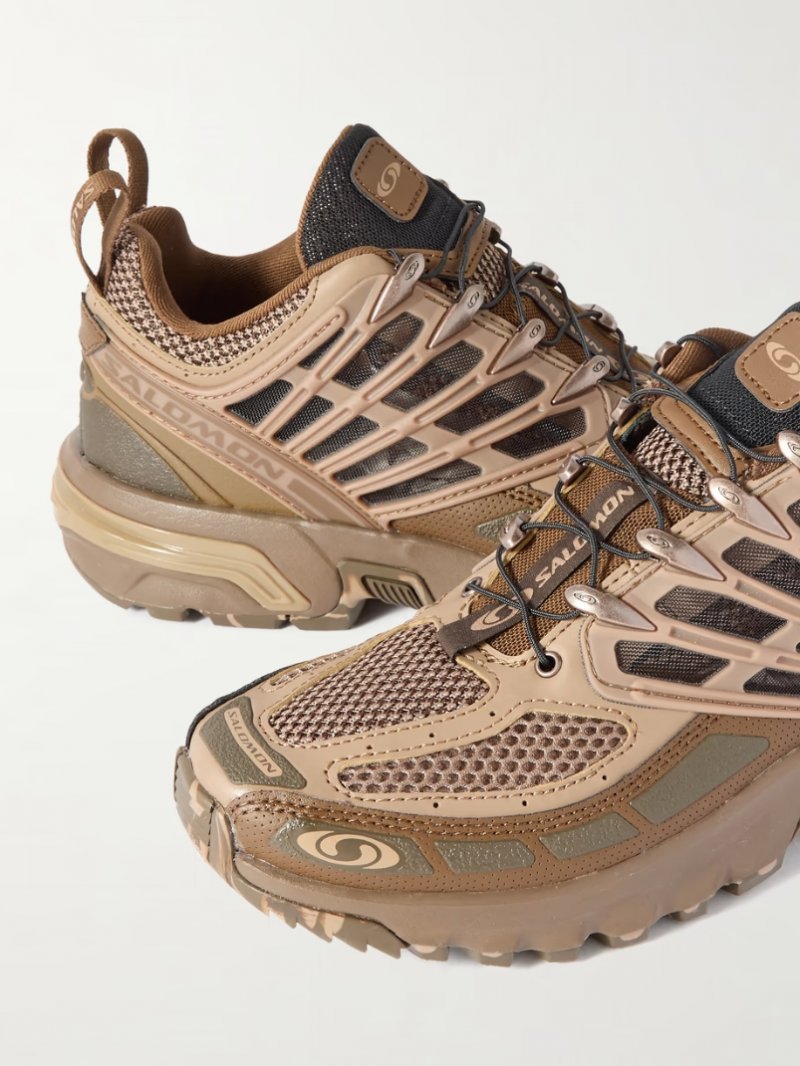 - Tonal-brown mesh, rubber and faux leather