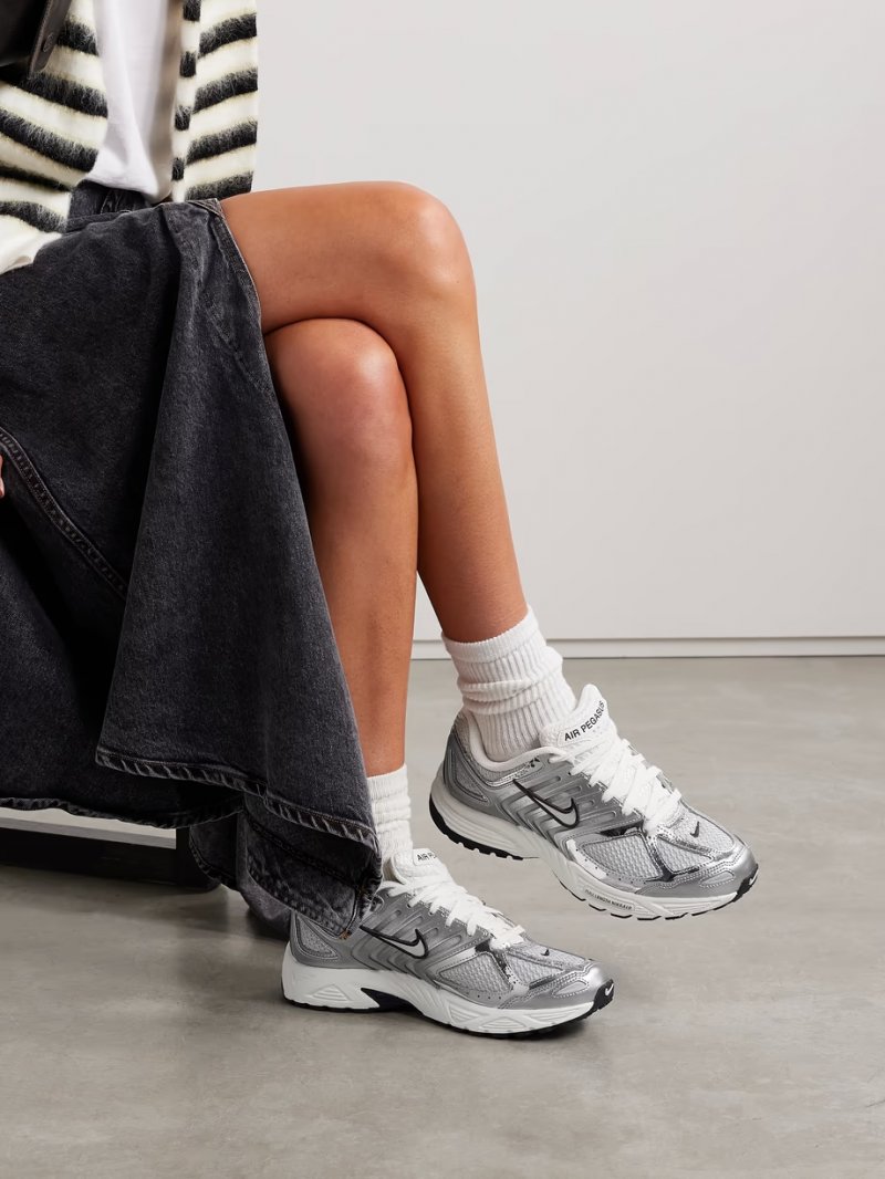 - Silver and gray leather, white and light-gray mesh