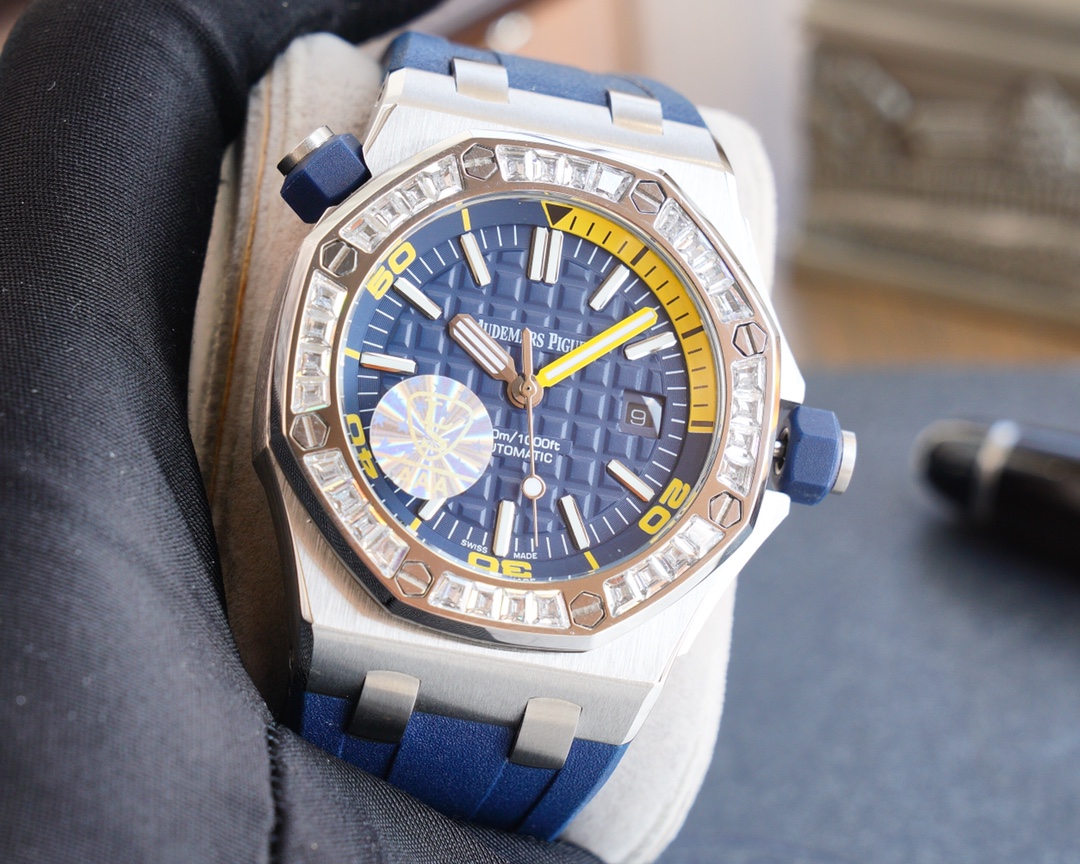 This is an entry-level watch from Audemars Piguet, designed for affordability while maintaining high quality. It features impeccable craftsmanship with a meticulous polishing and sanding process, showcasing the distinct angular lines of the octagonal bezel that is characteristic of AP watches. It is a must-have timepiece for rugged individuals. After a long process, the most refined watch is presented to watch enthusiasts.