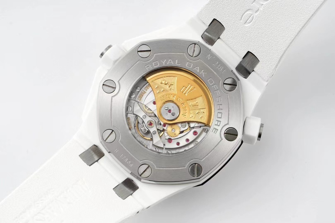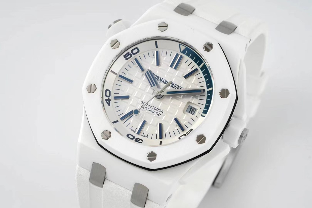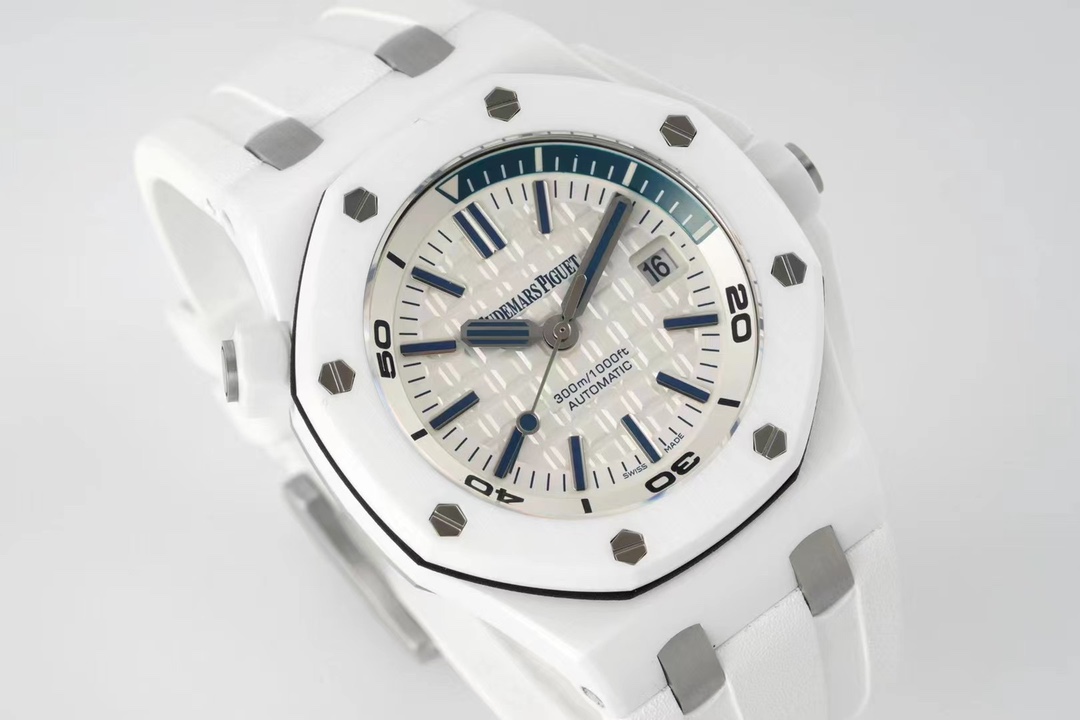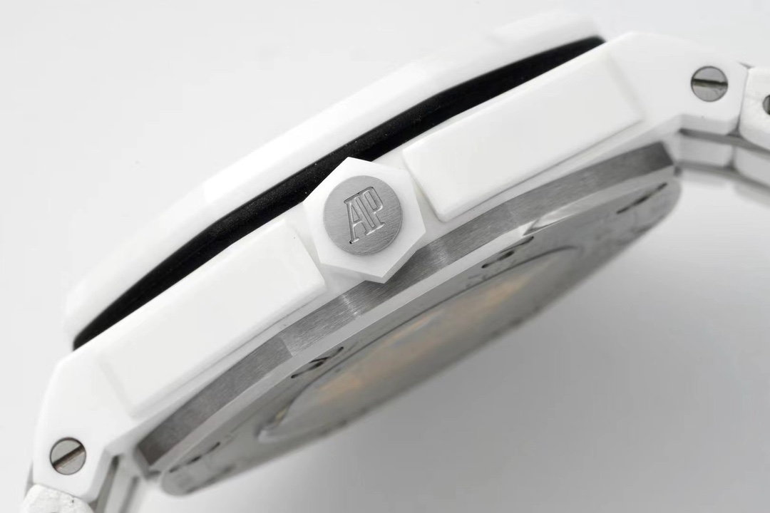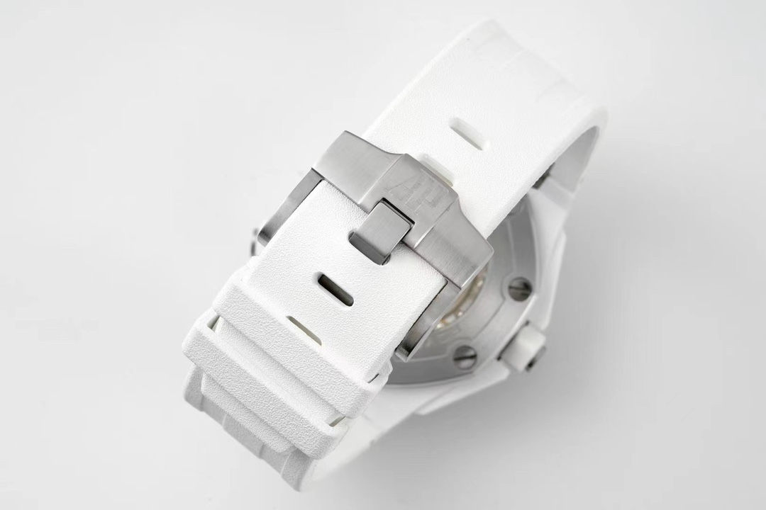 Clasp: The rubber strap is paired with a titanium alloy clasp that matches the original, simple and practical. The “AP” classic logo is engraved on the clasp with a powerful presence.