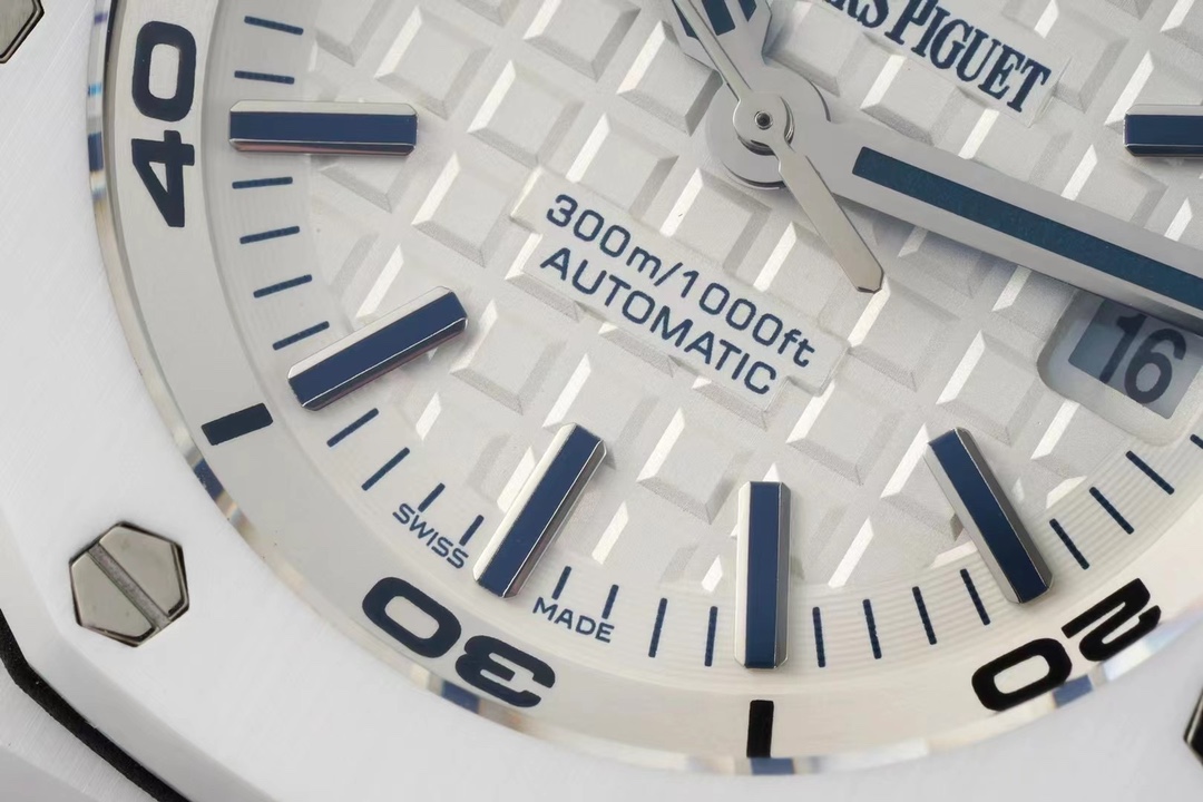 Dial: The dial features a three-dimensional and well-organized “hobnail” texture, identical to the original, highlighting Audemars Piguet’s distinctive style.