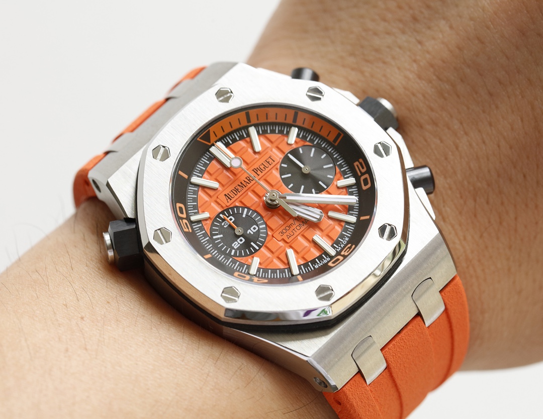 The dial features a distinctive and well-arranged grid pattern, creating a strong three-dimensional effect. The scale lines maintain the same thickness and length as the authentic model. The hour markers are filled with super luminous material. Two symmetrical sub-dials resemble a pair of eyes. The dial has concentric circles that enhance the details.