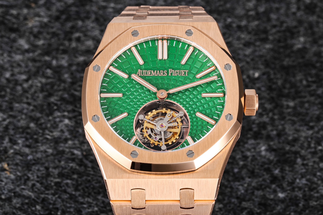 By combining a floating tourbillon with a central self-winding rotor, this watch ingeniously blends craftsmanship and aesthetic essence, showcasing the continuous evolution of Audemars Piguet’s watchmaking techniques. The iconic “Tapisserie” pattern on the Royal Oak’s dial has been redesigned with the tourbillon at 6 o’clock as the centerpiece, radiating outward. In the past, sports watches were considered entry-level models with practical functions. However, in recent years, as sports watches have become mainstream in the market, discerning consumers have also turned their attention to the field of sports watches. Basic functionality alone may not satisfy the expectations and demands of these players. However, among the sports watches offered by major brands in the market, there are relatively few works that combine sophistication, complexity, and durability like the Royal Oak Selfwinding Tourbillon. The tourbillon represents complexity in the realm of complicated functions, and it has a strong visual impact. Moreover, the automatic winding mechanism adds to the practicality of the watch. Its introduction fills the gap in the market for high-end complex sports watches that are currently lacking, thus attracting the attention of many collectors and enthusiasts.