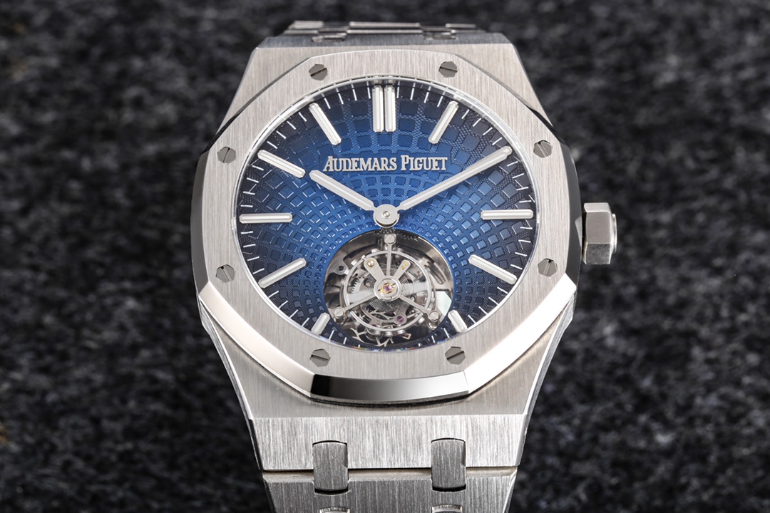 By combining a floating tourbillon with a central self-winding rotor, this watch ingeniously blends craftsmanship and aesthetic essence, showcasing the continuous evolution of Audemars Piguet’s watchmaking techniques. The iconic “Tapisserie” pattern on the Royal Oak’s dial has been redesigned with the tourbillon at 6 o’clock as the centerpiece, radiating outward. In the past, sports watches were considered entry-level models with practical functions. However, in recent years, as sports watches have become mainstream in the market, discerning consumers have also turned their attention to the field of sports watches. Basic functionality alone may not satisfy the expectations and demands of these players. However, among the sports watches offered by major brands in the market, there are relatively few works that combine sophistication, complexity, and durability like the Royal Oak Selfwinding Tourbillon. The tourbillon represents complexity in the realm of complicated functions, and it has a strong visual impact. Moreover, the automatic winding mechanism adds to the practicality of the watch. Its introduction fills the gap in the market for high-end complex sports watches that are currently lacking, thus attracting the attention of many collectors and enthusiasts.