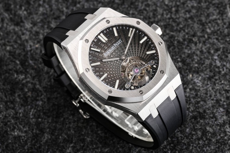 Audemars Piguet continues to lead the way in exploring innovation and unveiled the new Royal Oak Extra-Thin Tourbillon watch at the Geneva exhibition. The iconic “Tapisserie” checkered design has been reimagined into a fresh radiating pattern, offering a new visual experience. The sunburst radiating pattern originates from the tourbillon at 6 o’clock, with the size of the pattern gradually increasing from the center outwards, creating a captivating color gradient effect. The radiating pattern is brilliant and visually stunning. The checkered dial is complemented by white gold fluorescent three-dimensional hands, featuring Swiss superluminova, ensuring clear time visibility even in dark environments, providing great convenience.