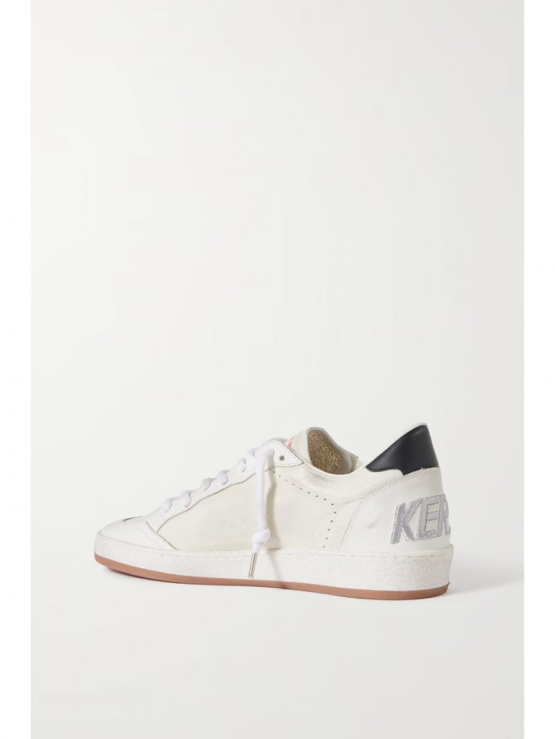 - White and black leather, silver snake-effect leather