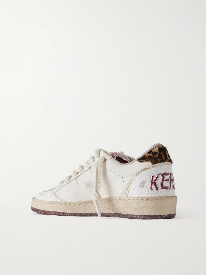 - White leather (Goat), gray suede, leopard-print calf hair