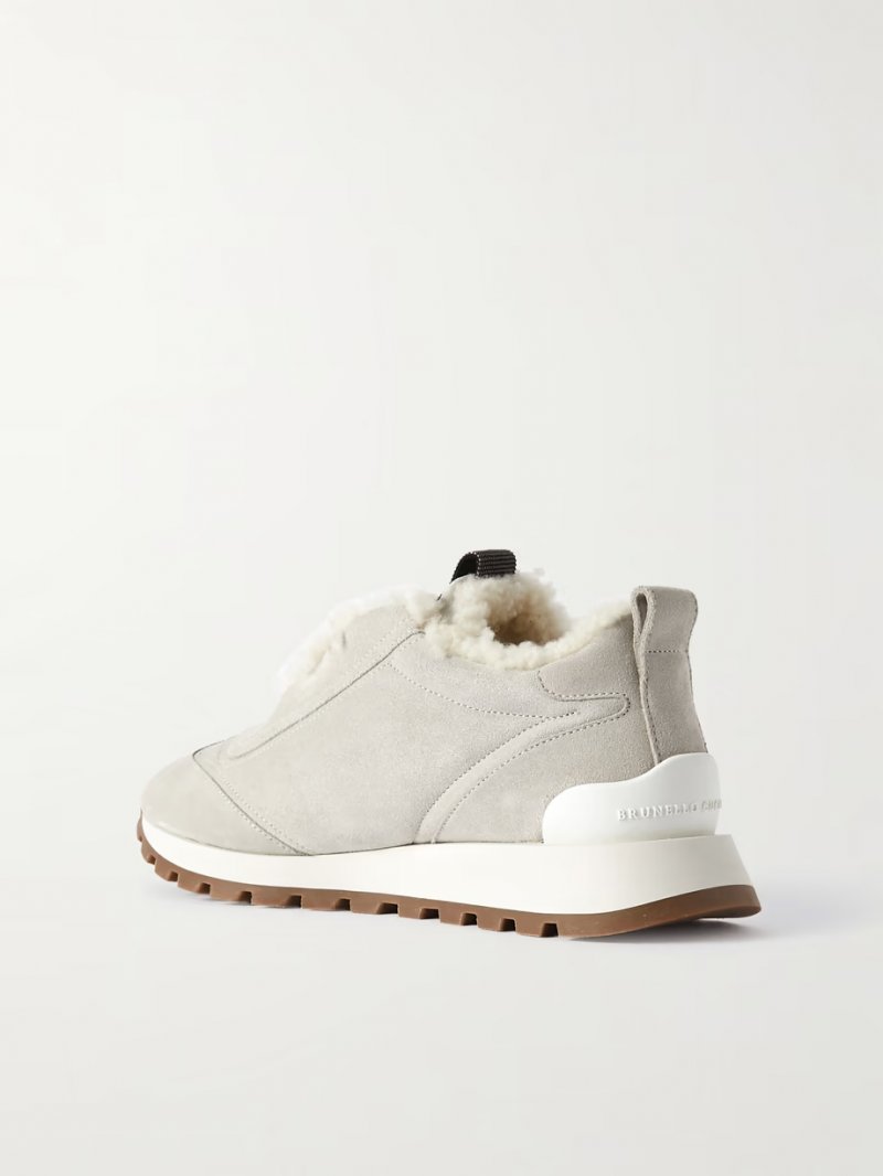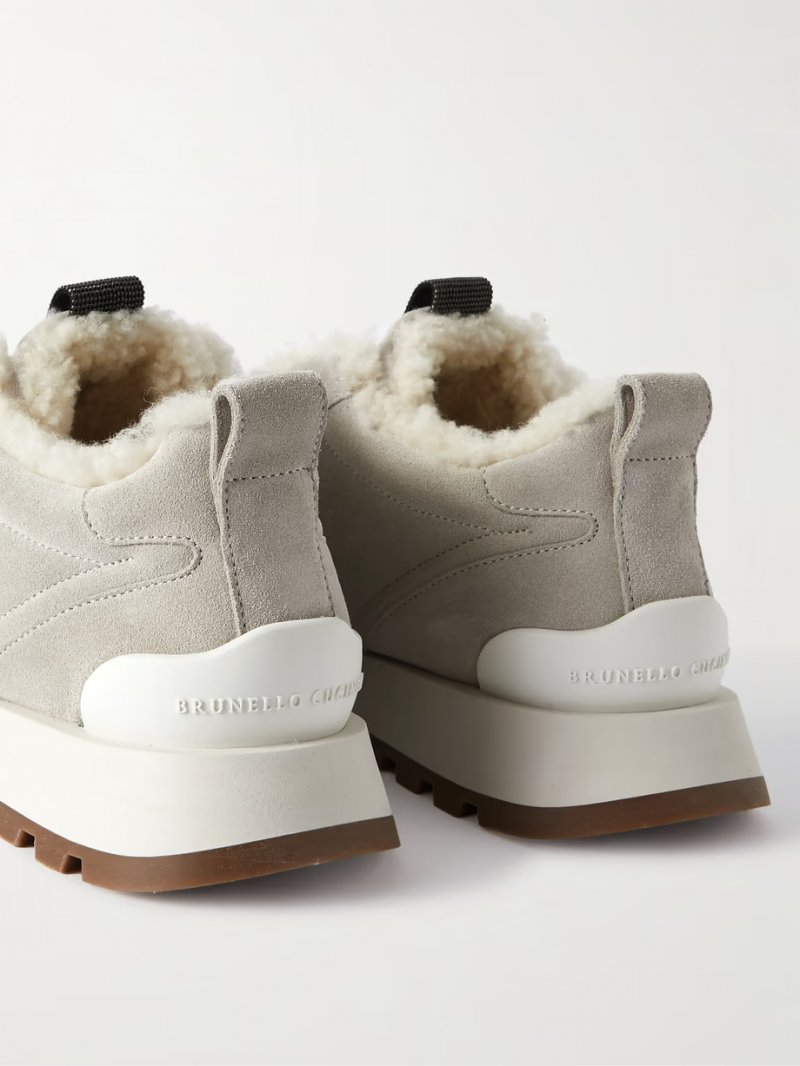 - Grey suede, cream shearling