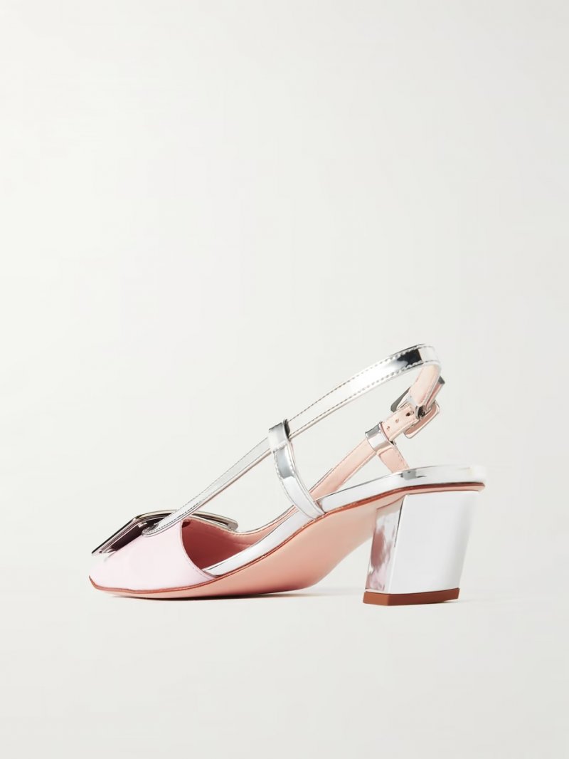 - Pink and silver patent-leather
