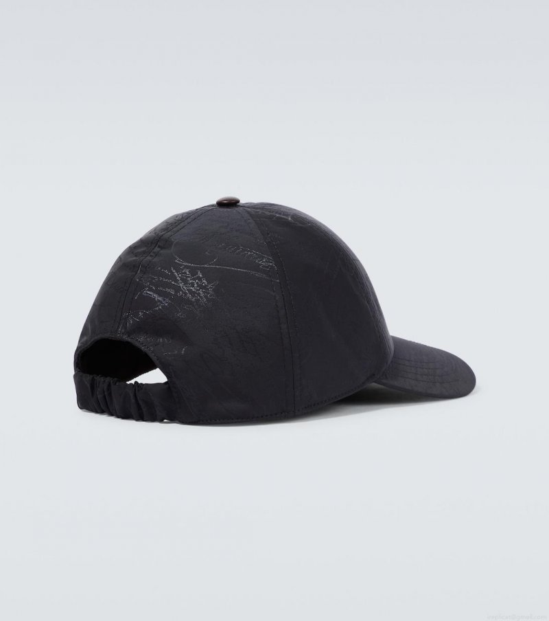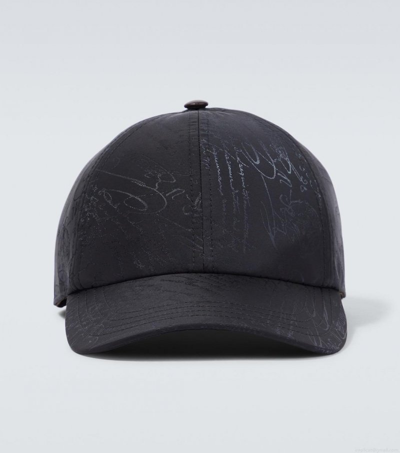 This piece features the extremely elegant Scritto motif, created by Olga Berluti as an homage to the art of calligraphy. This baseball cap features a leather trims and elasticated back.