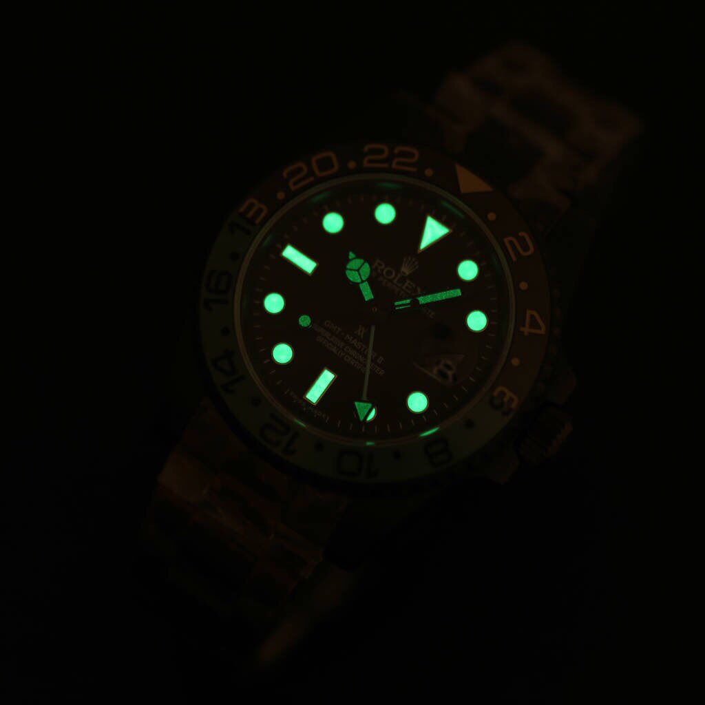 This Rolex GMT-Master II men’s watch is the ideal choice for fashion enthusiasts and travelers, thanks to its exquisite craftsmanship and high-quality materials. The dual time zone function makes it convenient for crossing different time zones, while the luminescent feature ensures easy readability at any time. With a water resistance of 50 meters and a durable bracelet, it can adapt to various daily activities. Whether in business or leisure settings, this watch showcases taste and charm.