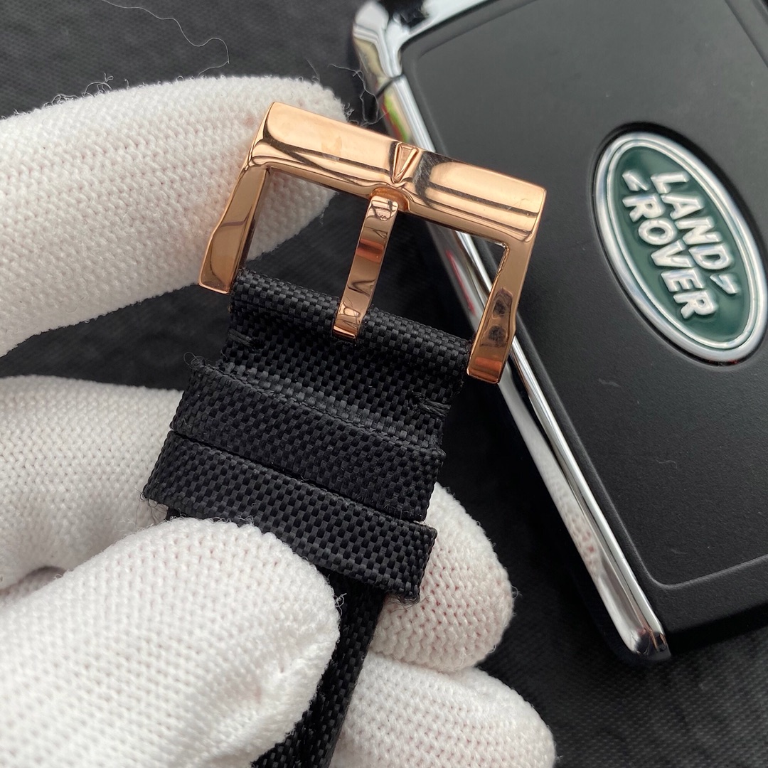 Luminous blue sapphire bezel, sapphire crystal with anti-glare blue coating, rhodium-plated hands, blue Geneva wave dial, imported 821A mechanical movement, solid case back, deep blue and dark black nylon fiber leather strap, titanium alloy buckle.