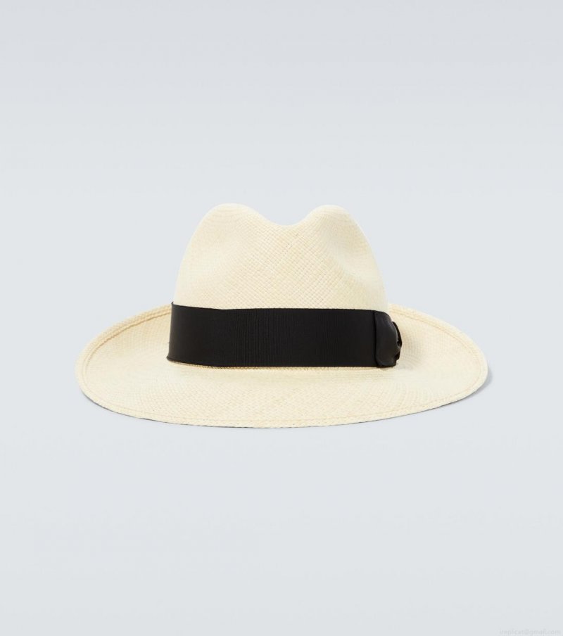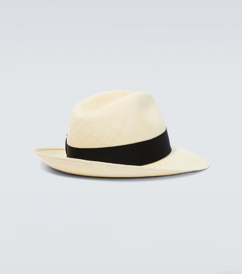In business since 1857, Borsalino is the longest-standing Italian hat manufacturer to date. The impeccably crafted straw Amedeo Panama Quito has a grosgrain hatband and a wide brim.