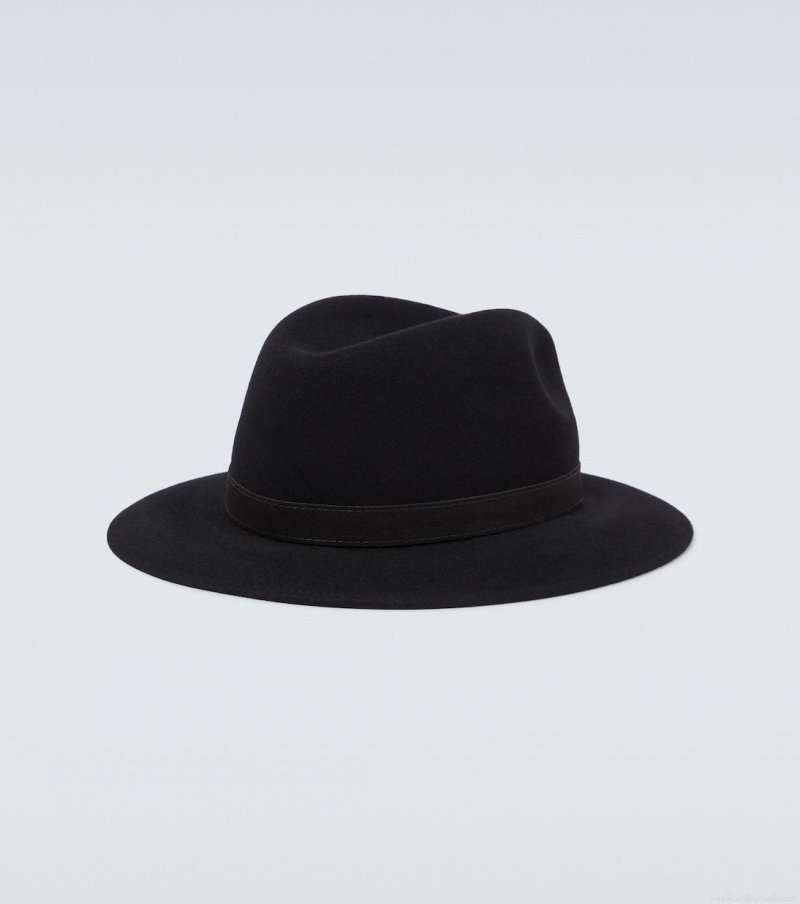 / BorsalinoLeather-trimmed wool fedora