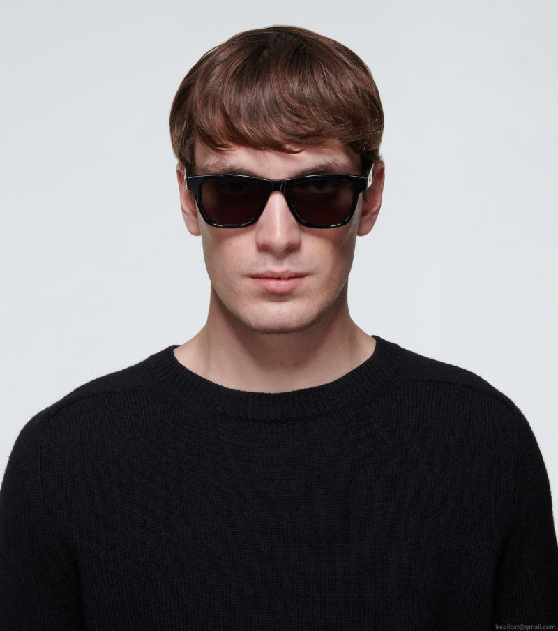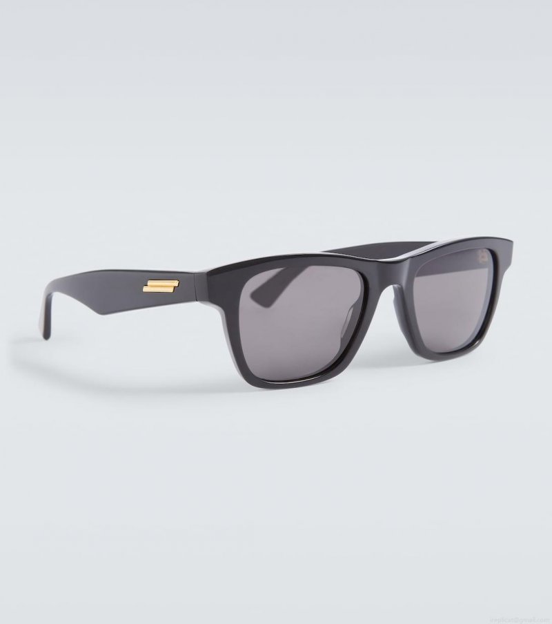 With a gold-toned detail at the temples, these black sunglasses from Bottega Veneta sport a thick acetate frame with dark lenses.