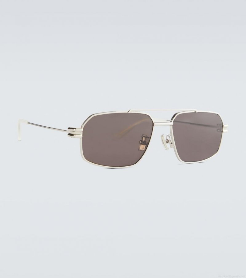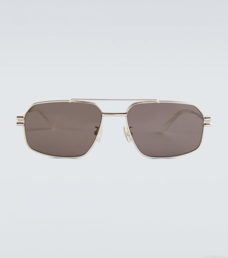 In an aviator shape, these silver-tone metal sunglasses from Bottega Veneta have a double nose bridge, black tinted lenses and come with a logo case. Please note that the color of the carrying case may vary from that as depicted in the image.