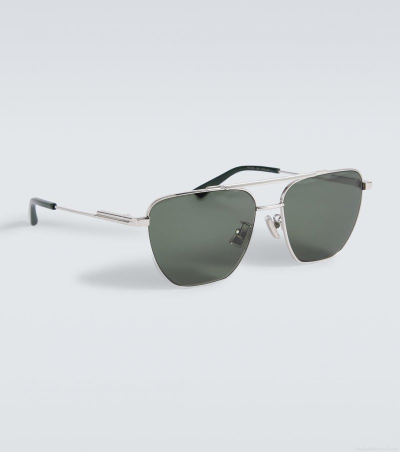 These silver-tone metal sunglasses from Bottega Veneta have a double nose bridge and tinted lenses in a geometric aviator-inspired shape. This style comes in a protective leather case, the color of which may vary.