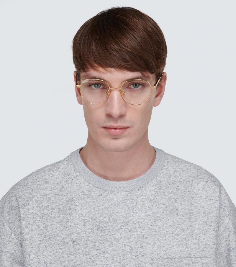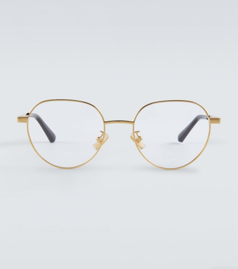 Add a luminous touch to your ensembles with these glasses from Bottega Veneta. Made in Italy they have a round silhouette that's encased by golden metal frames.