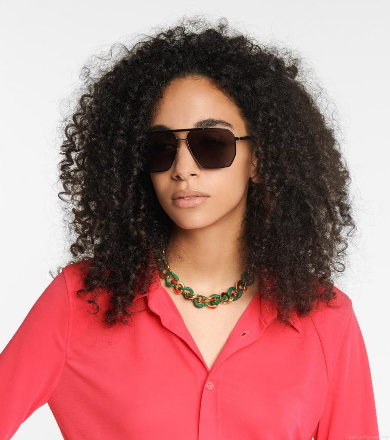 With sharp angles, Bottega Veneta gives these timeless black sunglasses a contemporary update. Made from metal with sleek lightweight frames and adjustable nose-pads for comfort, they're shaped to an artfully squared aviator silhouette. Keep yours safe in the iconic intrecciato-woven pouch.