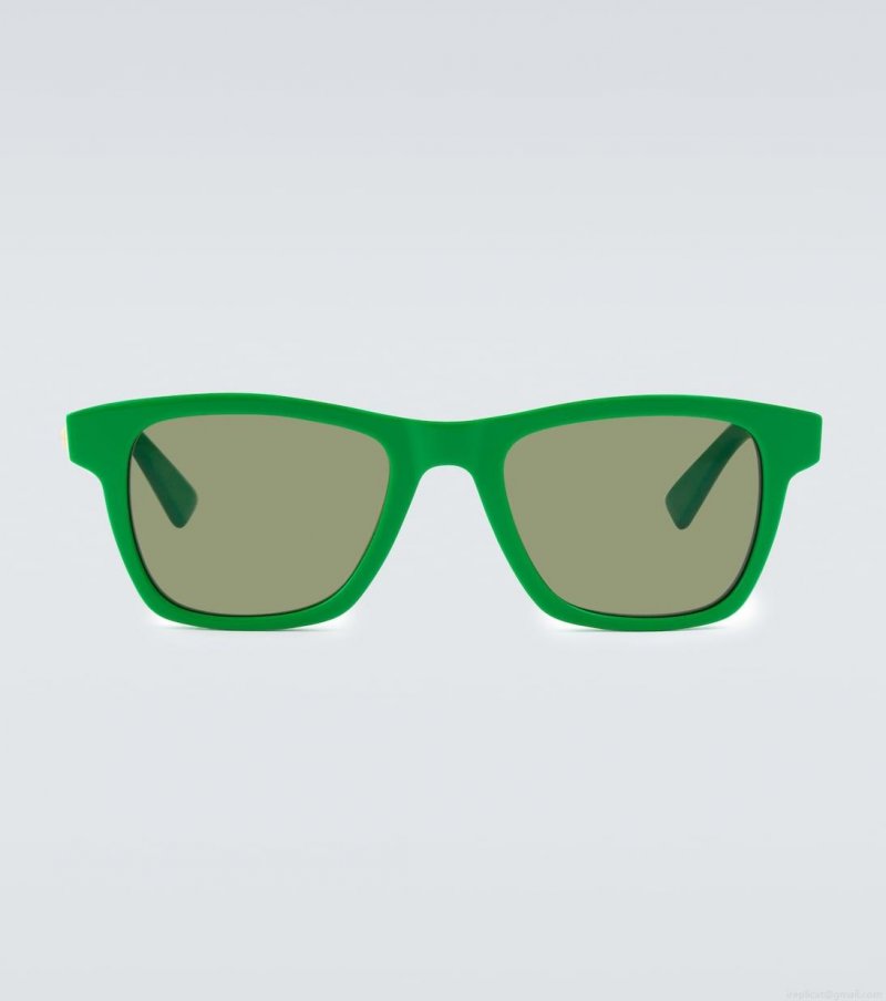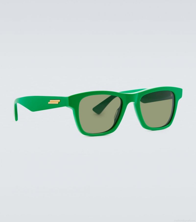 These sunglasses from Bottega Veneta are shaped with bold, thick arms that feature golden inlays. They're made from parakeet-green acetate to a square silhouette.