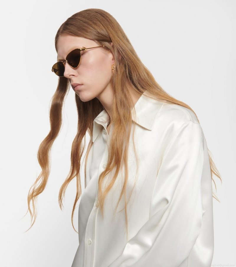 These cat-eye sunglasses from Bottega Veneta offer a fresh take on an eyewear icon. With golden metal frames and brown tinted lenses, they're finished with logo detailing at the temples lending a chic, contemporary touch.