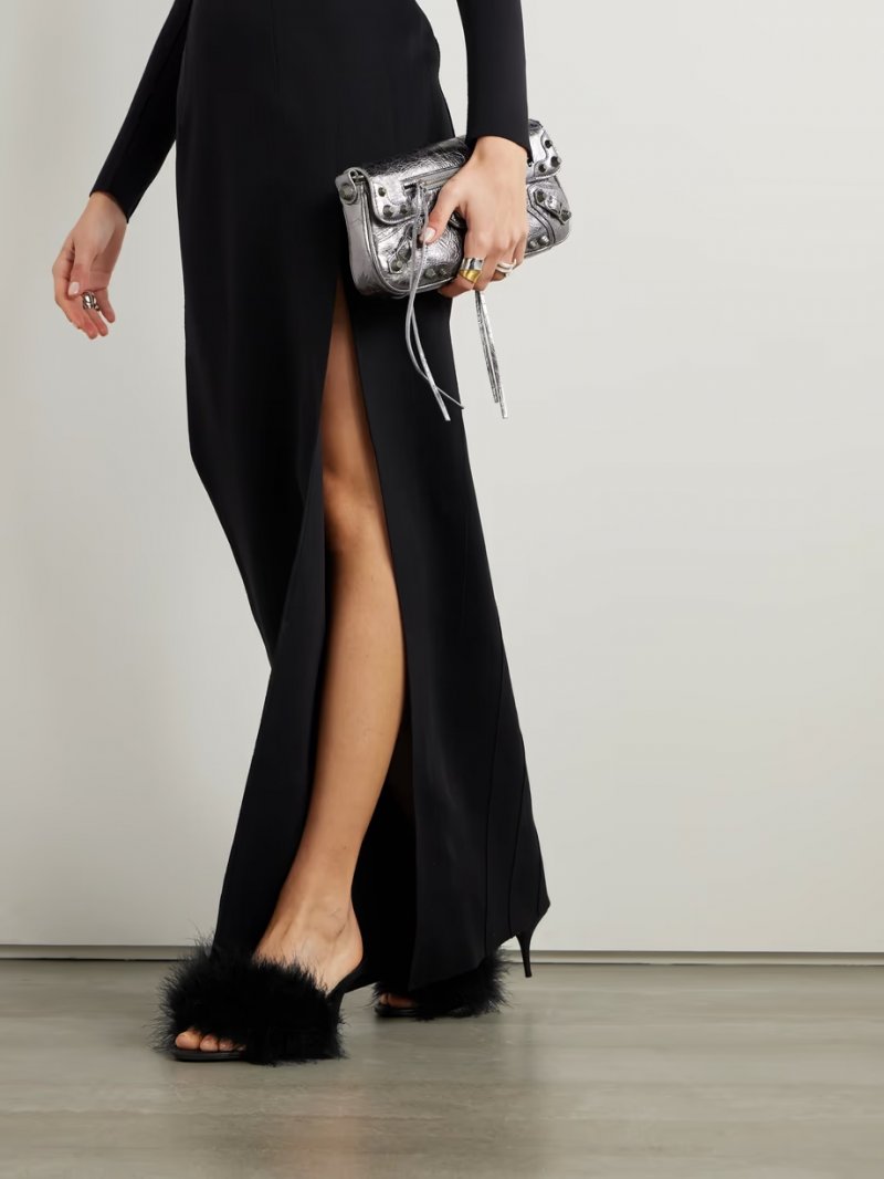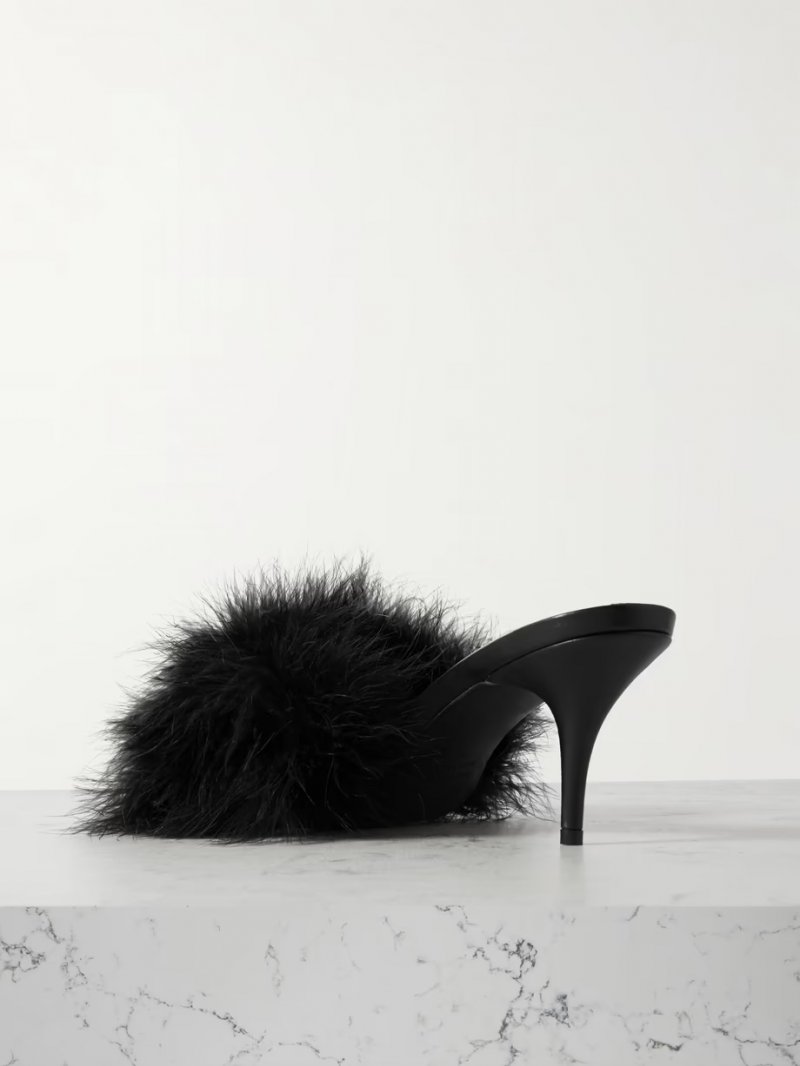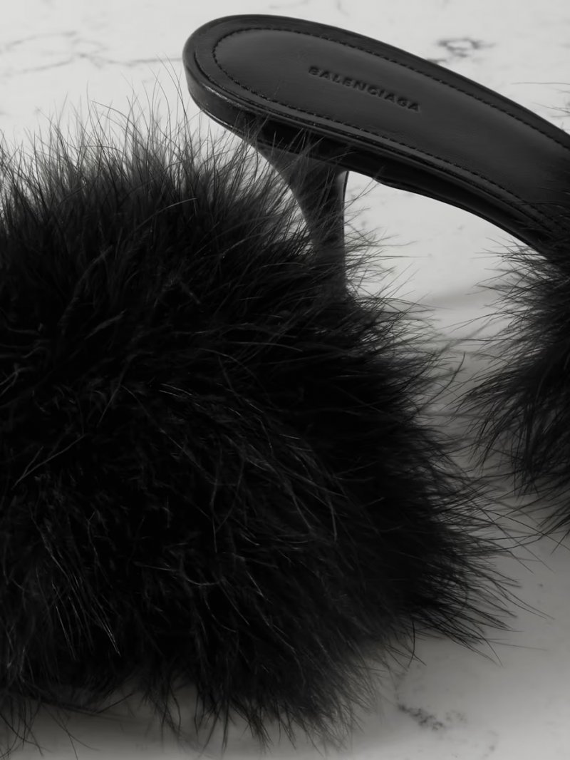 - Black leather (Lamb) and feathers (Turkey)