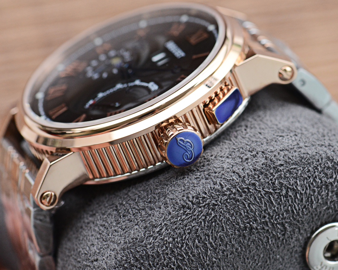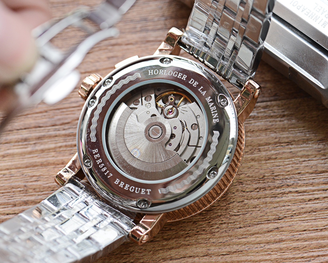 This is a classic Breguet series wristwatch, with a case made of 316L stainless steel, offering superior waterproof performance and excellent water resistance. It is equipped with a top-tier mechanical movement. The strap is made of imported calfskin, resistant to sweat and corrosion. The dial features a highly durable mineral crystal mirror, satisfying your visual enjoyment. The overall case design exhibits a strong three-dimensional sense and exquisite craftsmanship. Dimensions: Diameter 43mm, thickness 14mm.