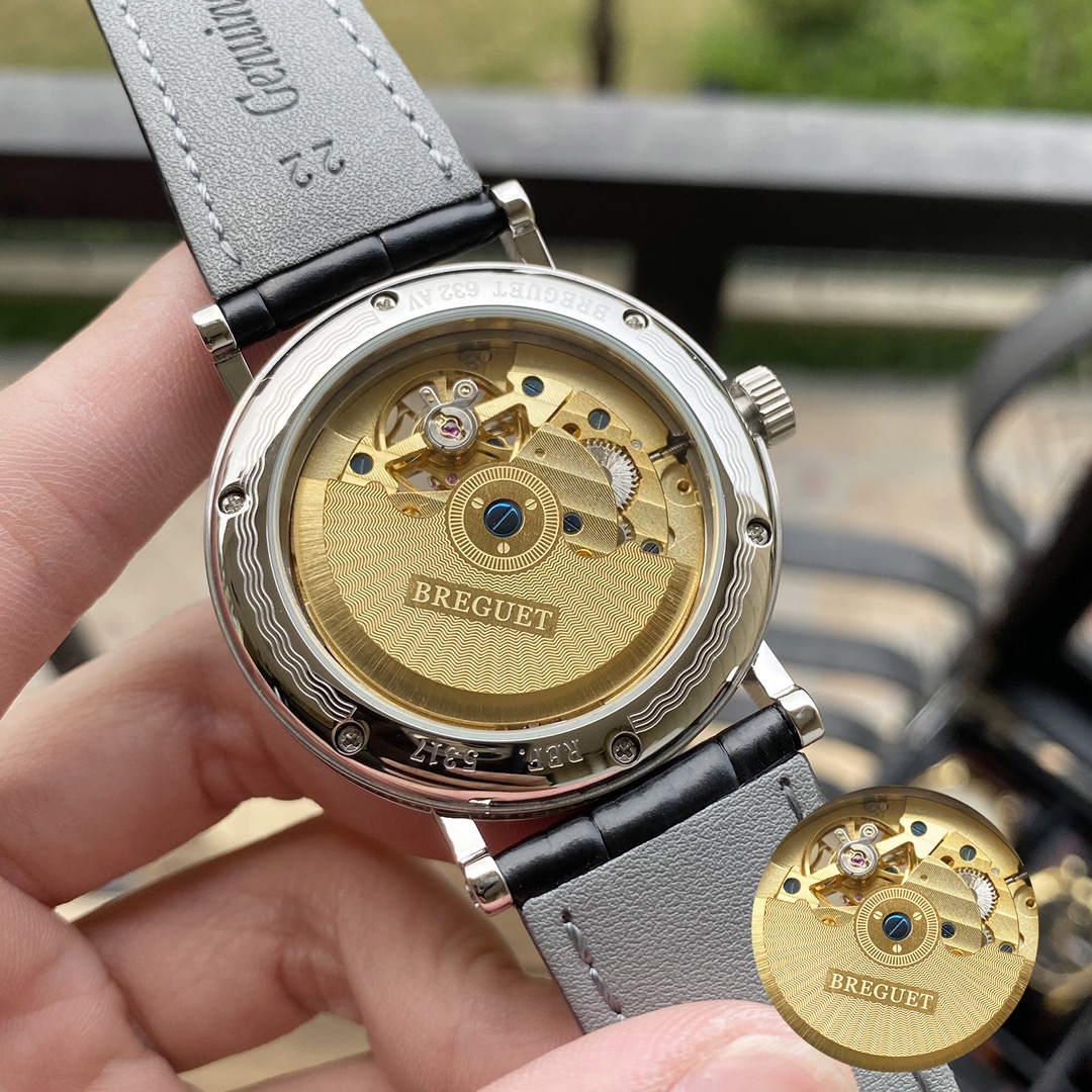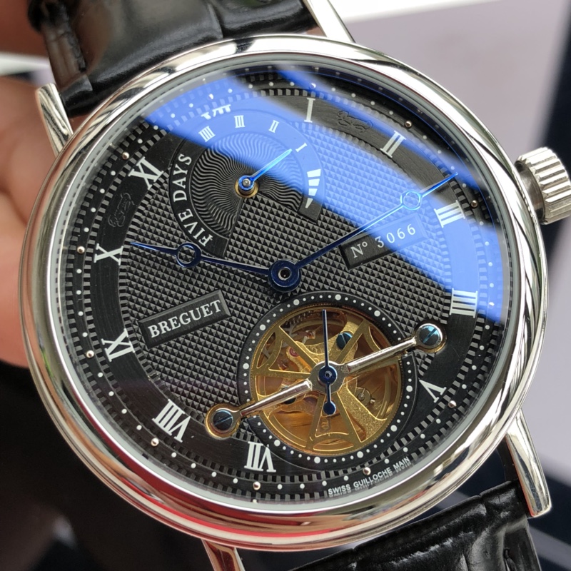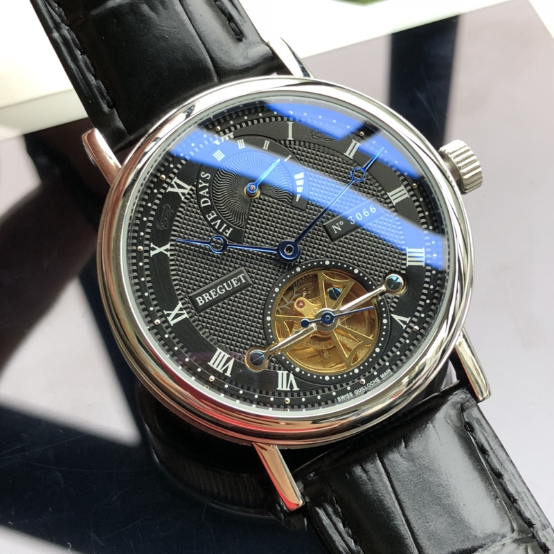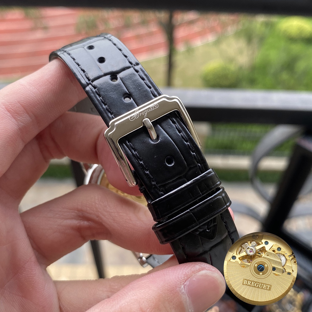 This is a classic Breguet series wristwatch, with a case made of 316L stainless steel, offering superior waterproof performance and excellent water resistance. It is equipped with a top-tier mechanical movement. The strap is made of imported calfskin, resistant to sweat and corrosion. The dial features a highly durable mineral crystal mirror, satisfying your visual enjoyment. The overall case design exhibits a strong three-dimensional sense and exquisite craftsmanship. Dimensions: Diameter 43mm, thickness 14mm.