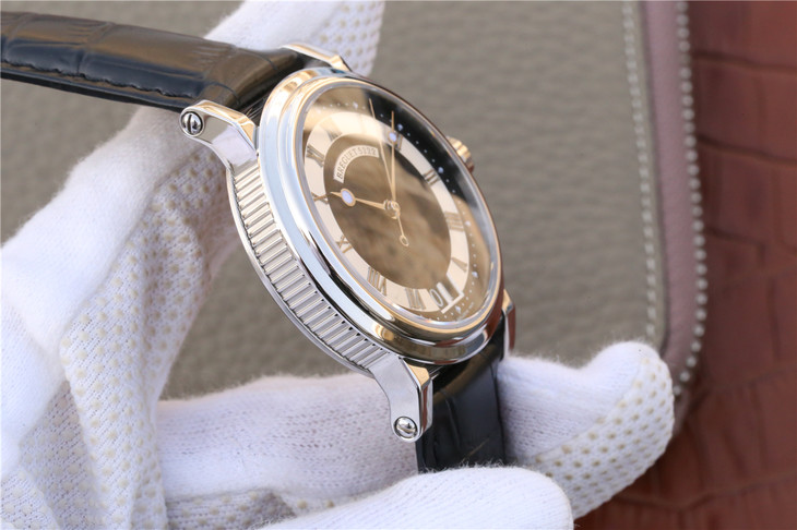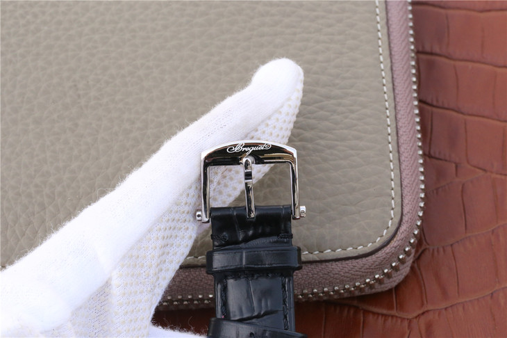 This is the Breguet Marine Series 5817 wristwatch, with a diameter of 39mm. It is powered by the reissued Breguet Cal.517GG movement. The watch features Breguet hands (hollow eccentric “moon-shaped” hands) and Breguet numerals. The central part of the dial adopts the signature wave pattern of the Marine series, which is also echoed by the wave-like texture on the balance wheel of the movement. The watch has an exquisite and elegant appearance, combining both a sense of fashion and sophistication. It is a great choice for both business and casual occasions.