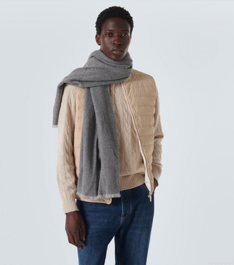 / Brunello CucinelliHerringbone cashmere scarf