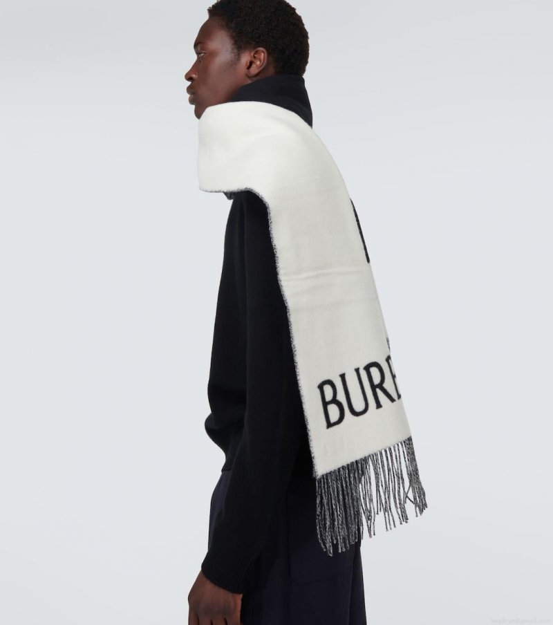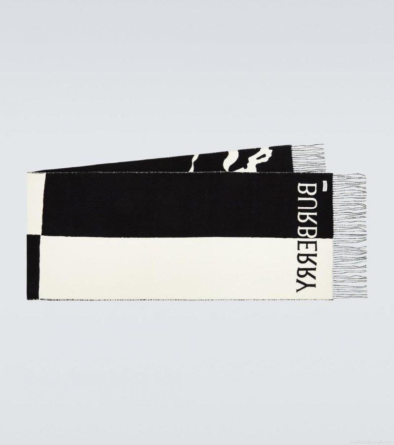 Complete your cold-weather ensembles with this scarf from Burberry. Expertly knitted from wool and cashmere, the black and white style features logo lettering and the brand's Equestrian Knight Design motif.