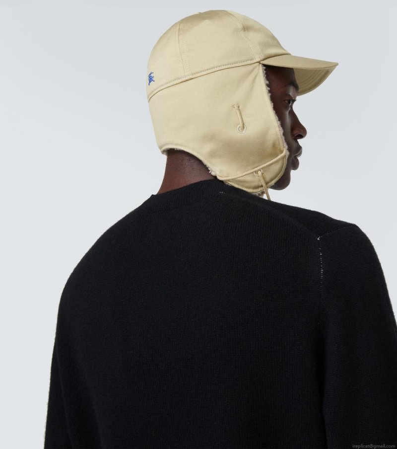 Add this hat from Burberry to your cold-weather rotation. Made from cotton and partially lined with faux shearling, the style features ear flaps and subtle Equestrian Knight Device logo embroidery.