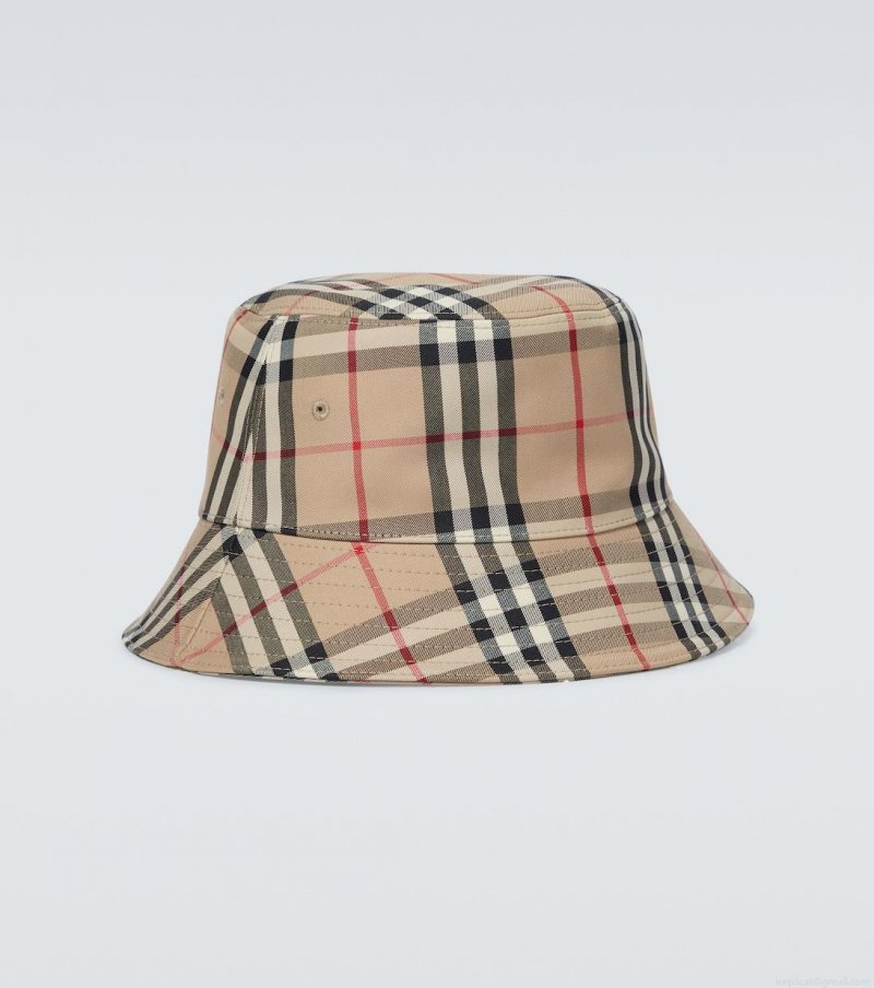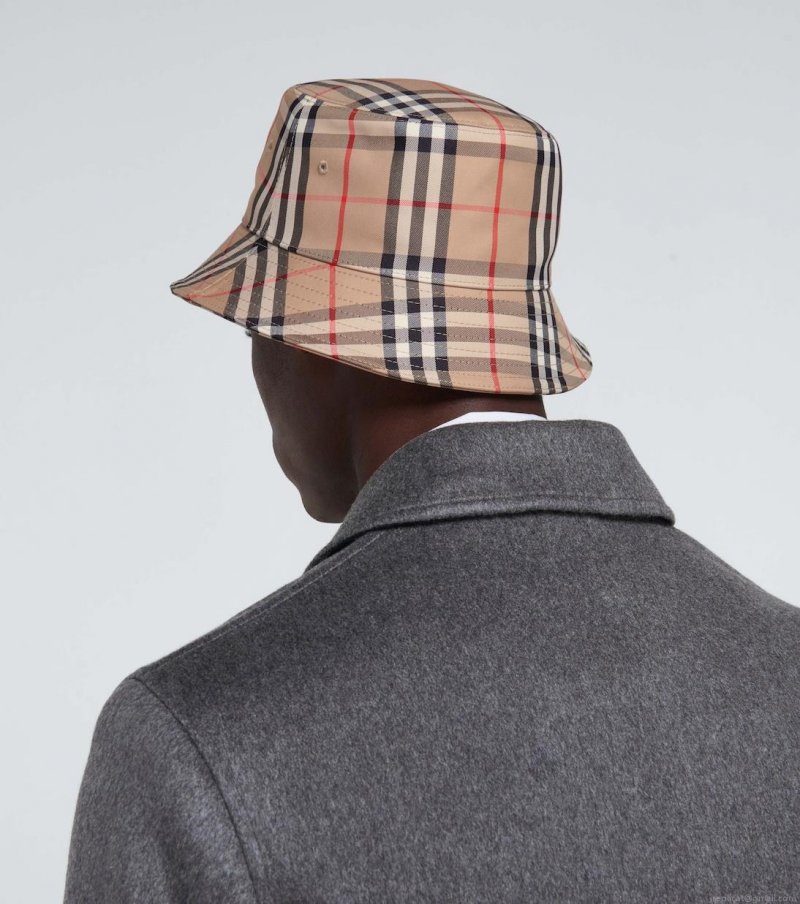 This bucket hat from Burberry is made in Italy from a cotton and technical fabric blend, and features the label's iconic Vintage check all-over in archive beige.