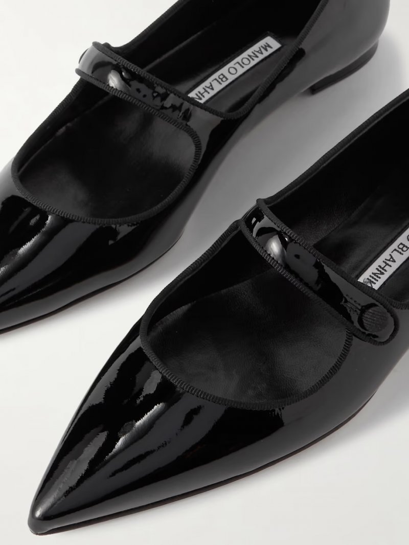 - Black patent-leather (Calf) and grosgrain