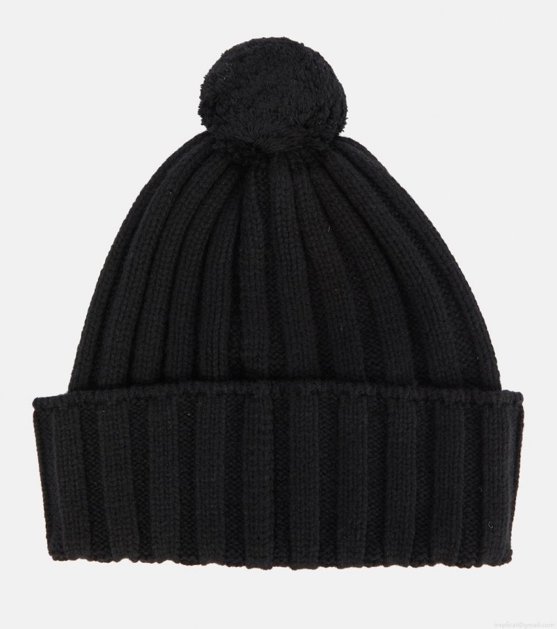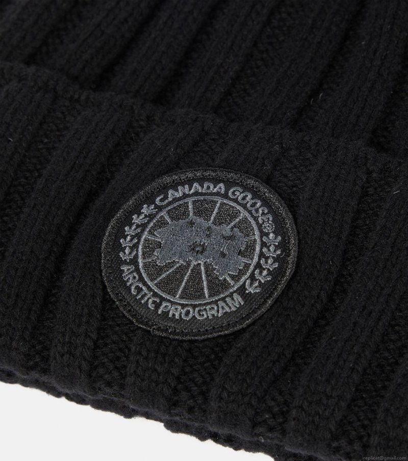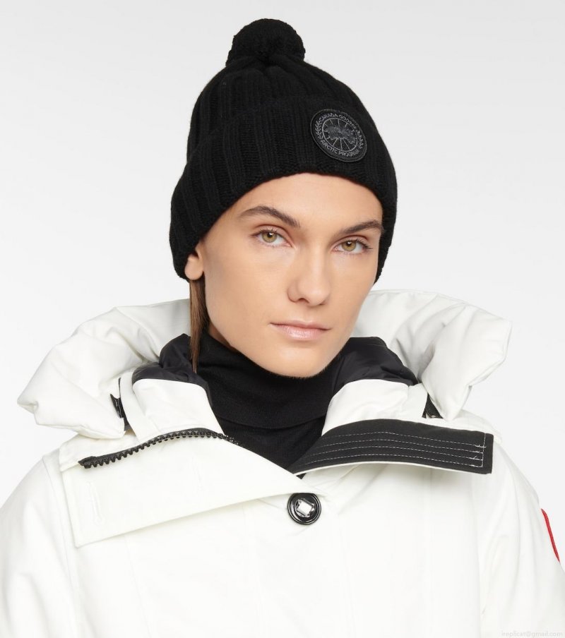 This black beanie from Canada Goose is knitted from a mix of cashmere and woolen yarns with a turn-up hem. It's accented with a plush pompom and a same-color logo patch at the front.