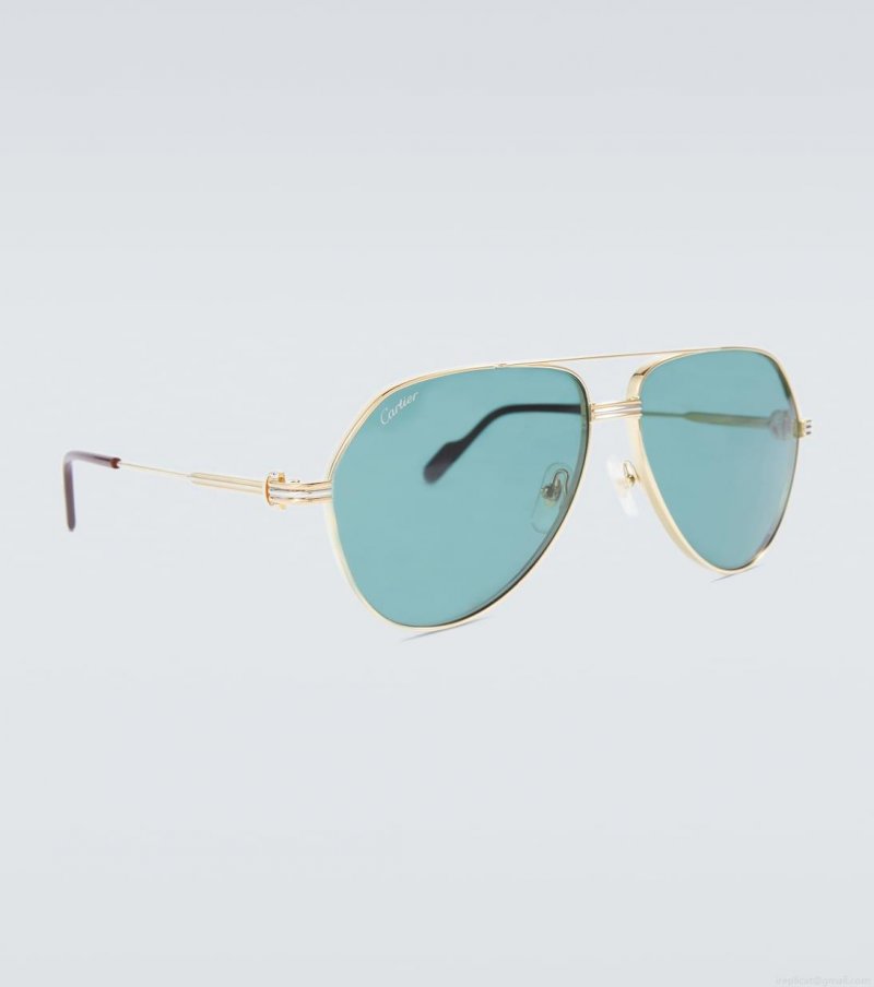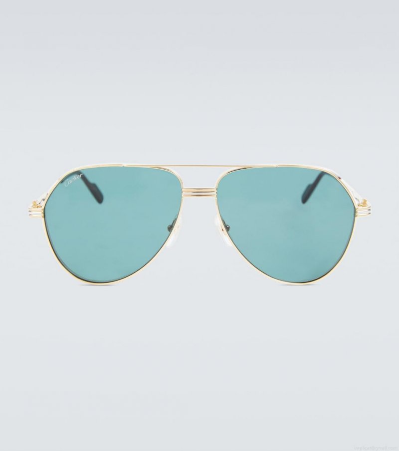These foldable aviator sunglasses from Cartier Eyewear Collection sport a gold-tone metal frame, and are finished with blue-tinted lenses.