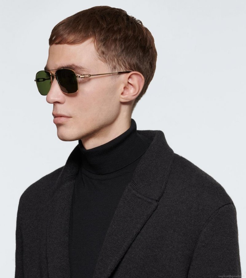 These Cartier Eyewear Collection sunglasses have gold-tone metal frames, green lenses and come in a carrying case, the color of which may vary from that in the image.