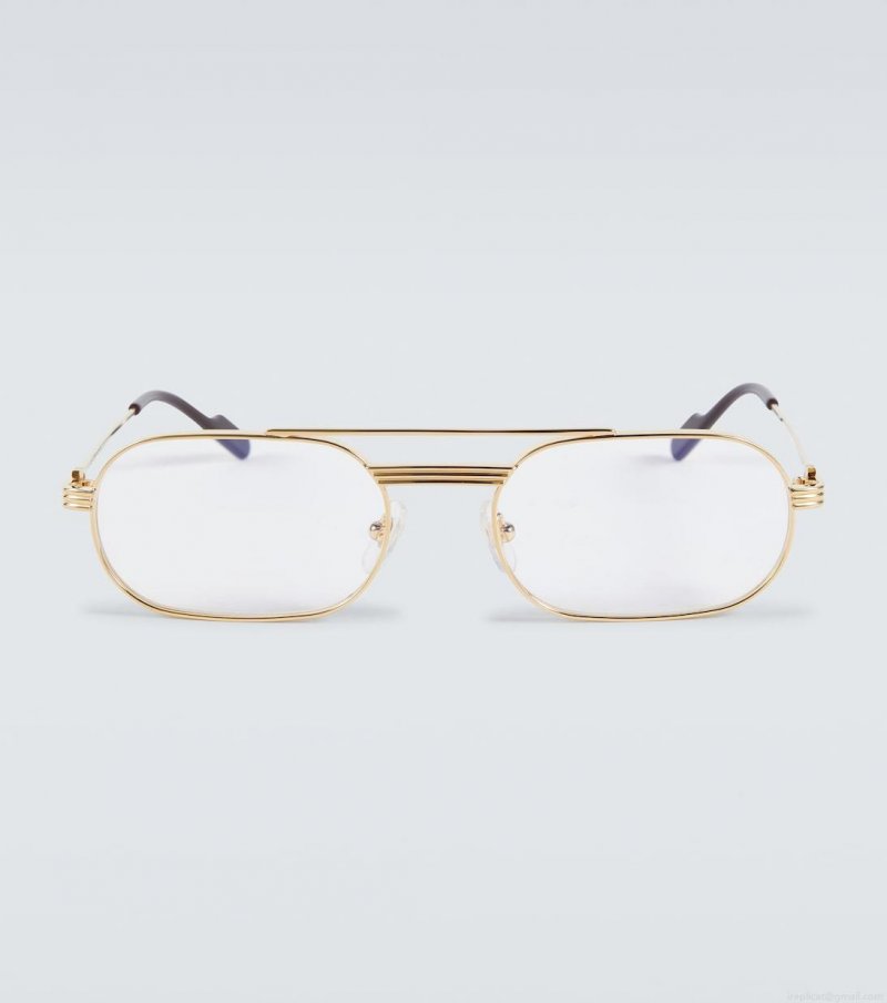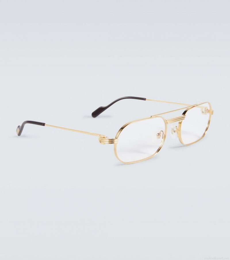 The Exception glasses from Cartier Eyewear Collection are made from metal with a gold-tone finish. The rectangular style features top bars that frame the face.