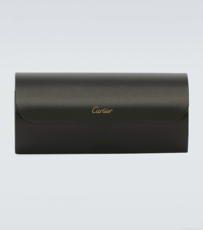 With a gold-toned metal frame and black detailing at the lens, these optical glasses from Cartier Eyewear Collection are lightweight, sleek and come in a protective hard case.