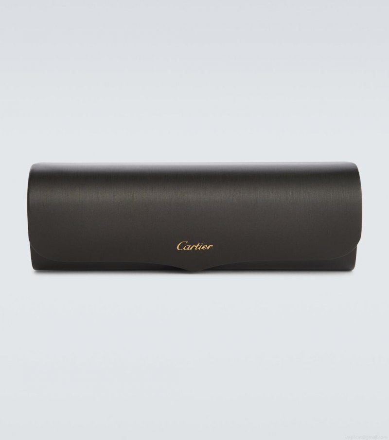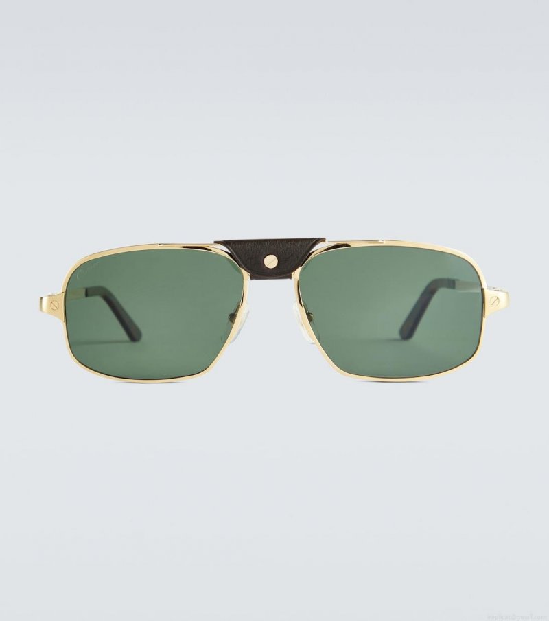 With a thick acetate bridge, these rectangular sunglasses from Cartier Eyewear Collection have a gold-tone rim and green tinted lenses. This style comes in a carrying case, the color of which may vary from that in the image.