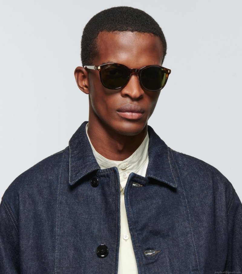 Simple and elegant, these sunglasses from Cartier Eyewear Collection are crafted from acetate and feature straight arms with gold-tone hinges, and green-tinted lenses.