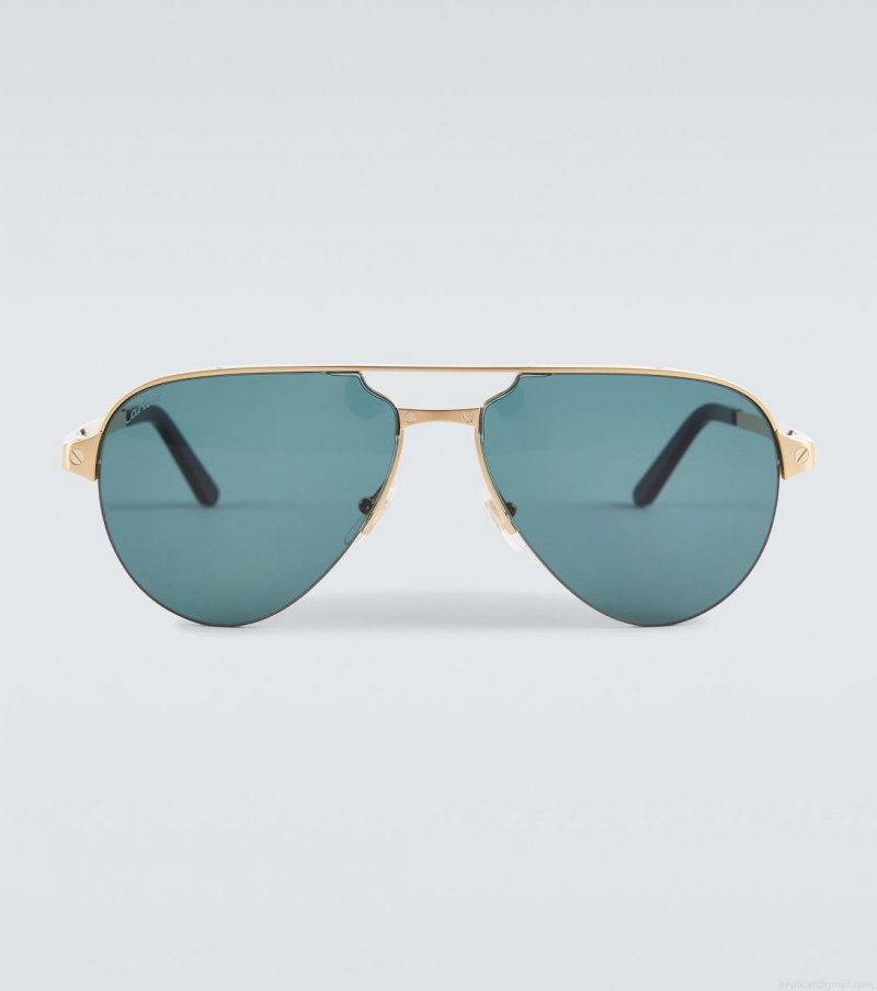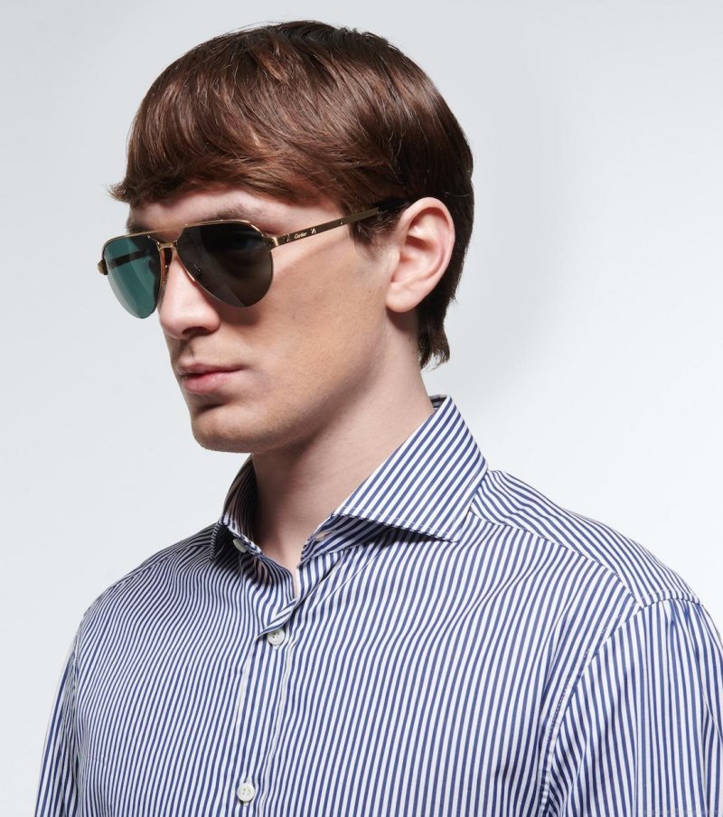 Cartier's expertise in jewelry-making extends to the Cartier Eyewear Collection, a line of exquisite styles for everyday wear. The Santos de Cartier aviator sunglasses feature polished gold-tone frames with iconic lock detailing and tinted lenses.