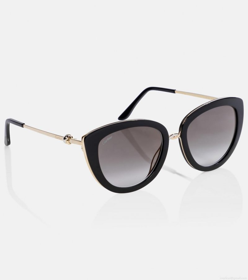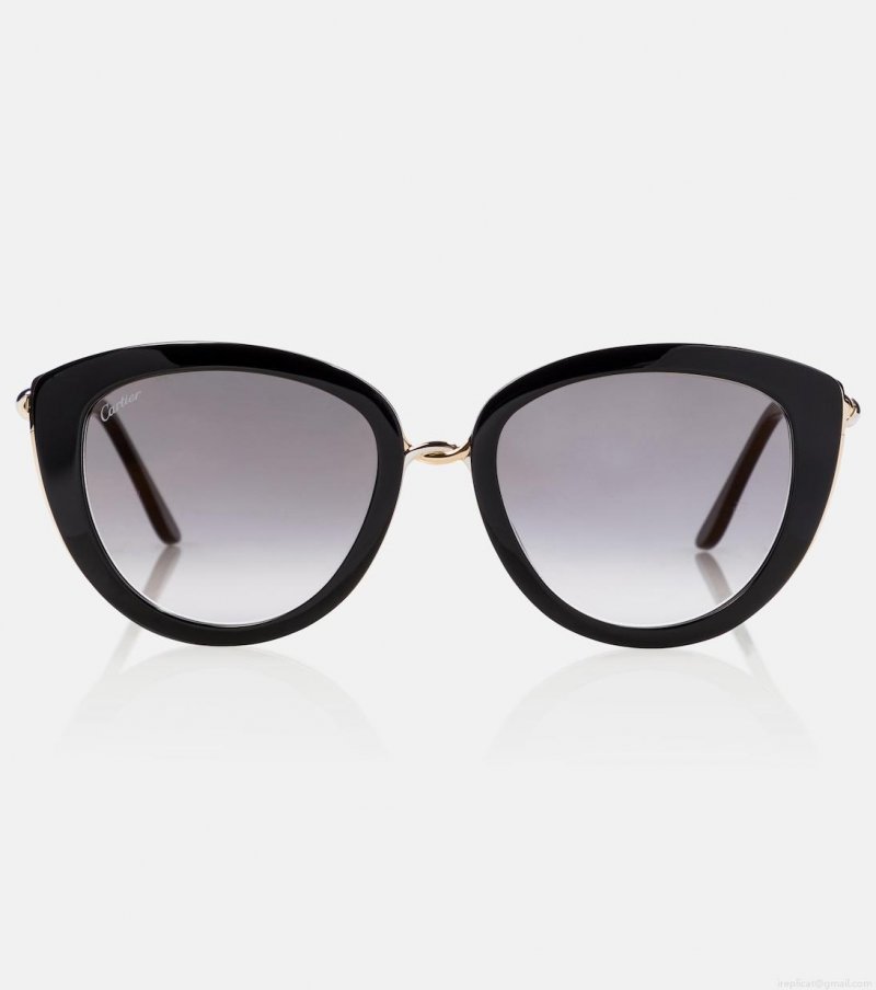 Make a retro-chic style statement with these black Trinity sunglasses from Cartier Eyewear Collection. Made in Italy from a combination of acetate and gold-tone metal, they have a cat-eye silhouette with tonal-tinted lenses and logo-engraved temples.