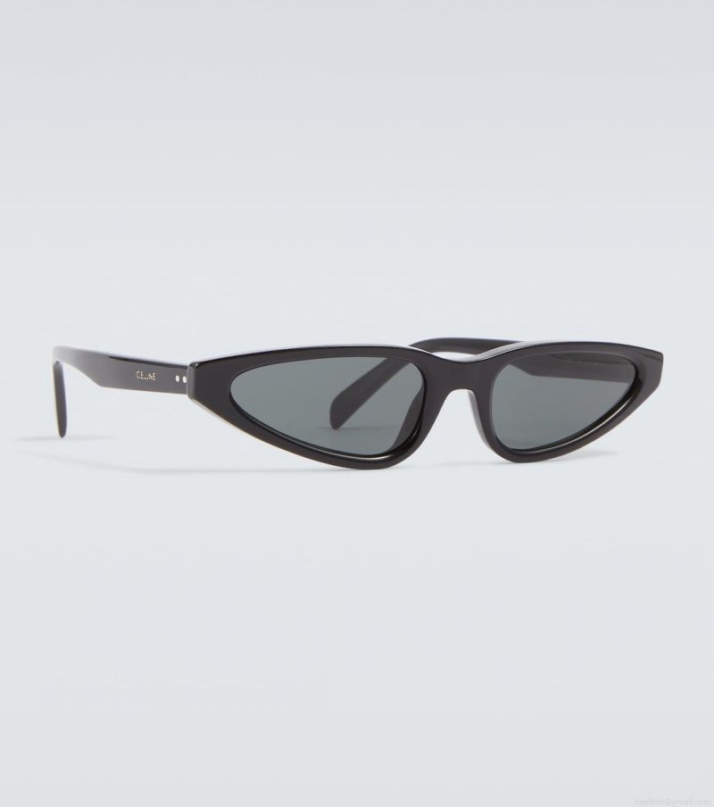 These futuristic sunglasses from Celine Eyewear have an elongated cat-eye silhouette. Made in Italy from black acetate, they have tonal lenses that will protect your eyes from UVA and UVB light.