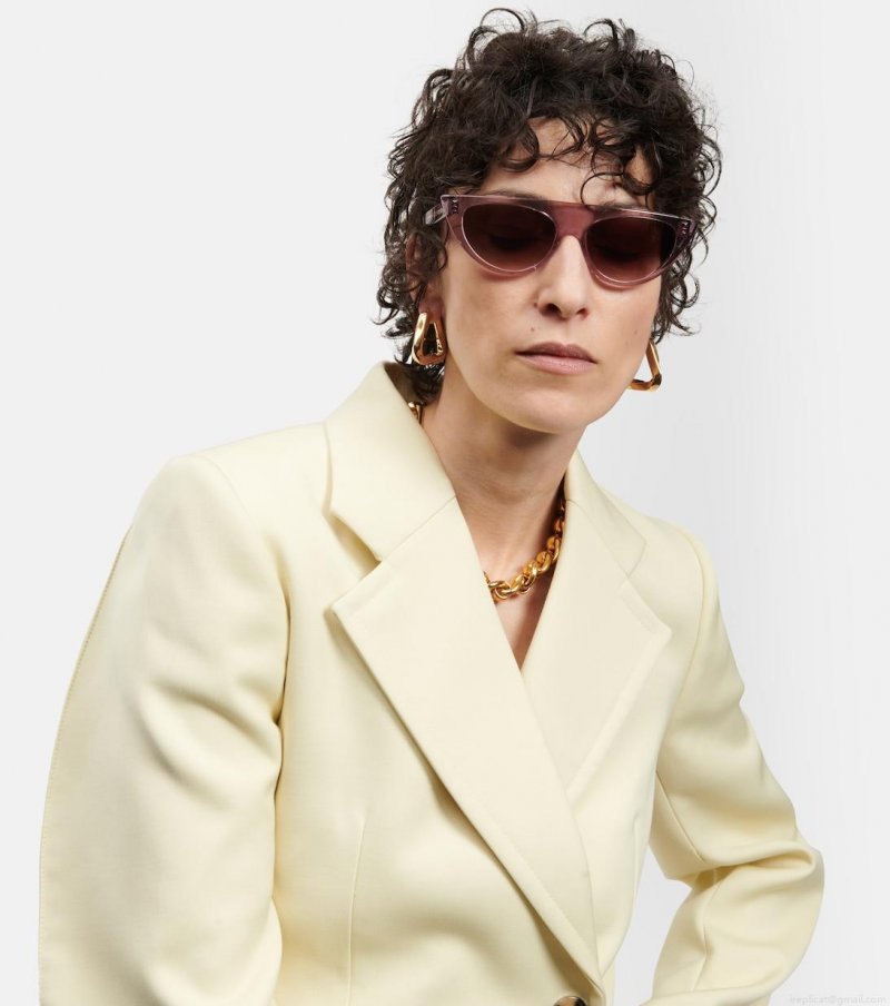 These sunglasses from Celine Eyewear combine a cat-eye silhouette with a flat top. Made in Italy, the tonal design has transparent frames and gradient lenses.