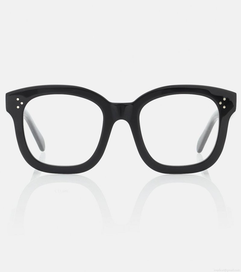 Frame your face in enviable style with these shiny black glasses from CELINE Eyewear. Made in Italy from lightweight and durable acetate, this pair is fashioned to a classic D-frame shape with subtle branding at the temples and clear lenses.