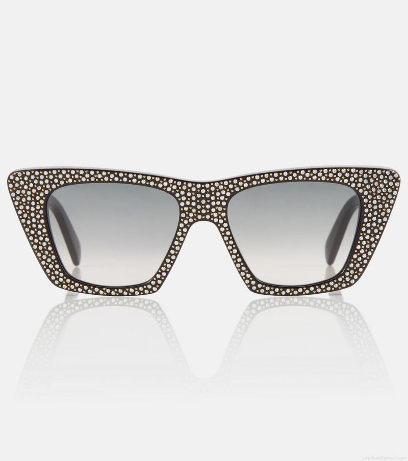 Finish your looks with a sparkly touch in these sunglasses from Celine Eyewear. Covered in crystals and gold-tone studs, the style is shaped into a cat-eye silhouette with grey gradient lenses.