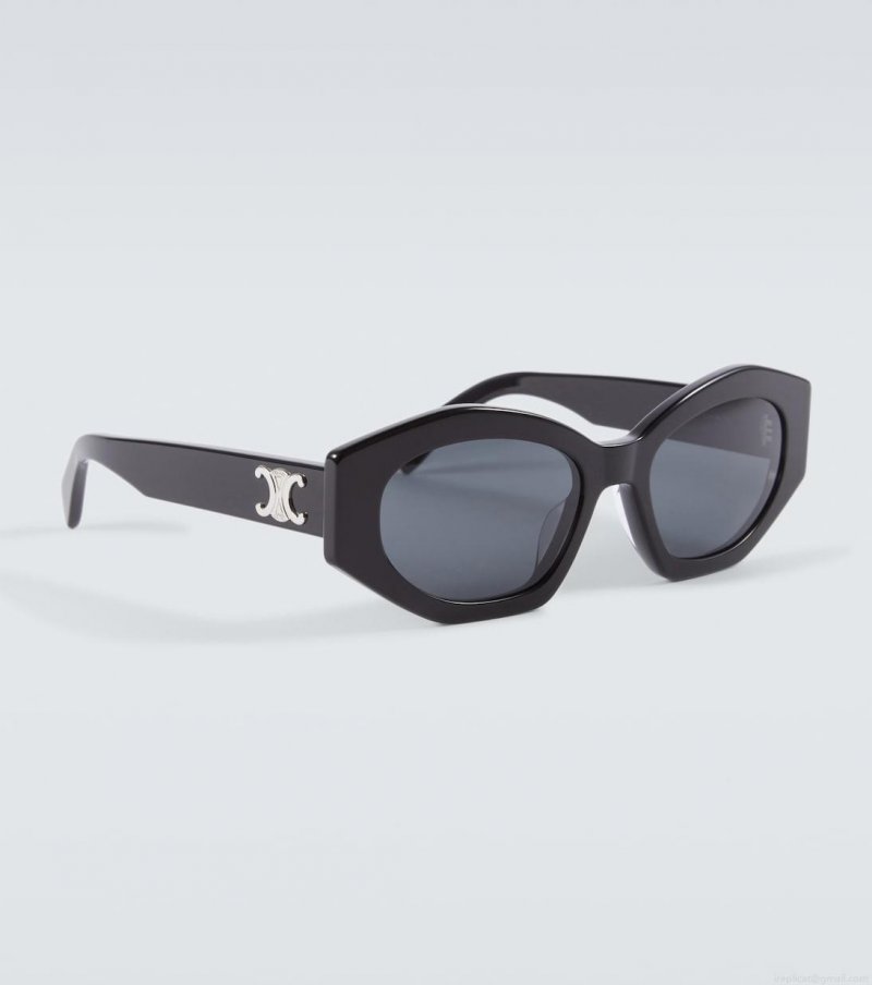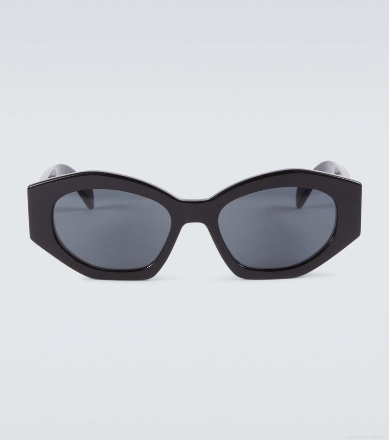 These angular oval sunglasses from Celine Eyewear experiment with the artistic tension between edges and curves. Made in Italy from black acetate, the design comes with tinted gray lenses and golden branding at the temples.