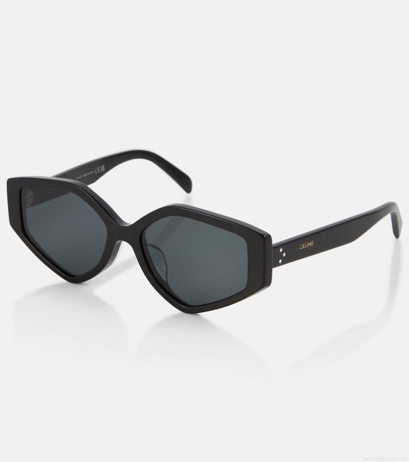 These angular oval sunglasses from Celine Eyewear balance edgy with chic. They're made in Italy from black acetate and feature subtle golden inlaid branding at the arms.
